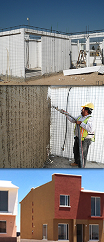 Solución de losas, muros estructurales y divisorios de concreto reforzado, a base de panel constructivo de mallas de acero electrosoldadas de alta resistencia y núcleo de poliestireno expandido, que le confiere al sistema terminado propiedades de aislamiento térmico y acústico, para cualquier tipo de edificación.
